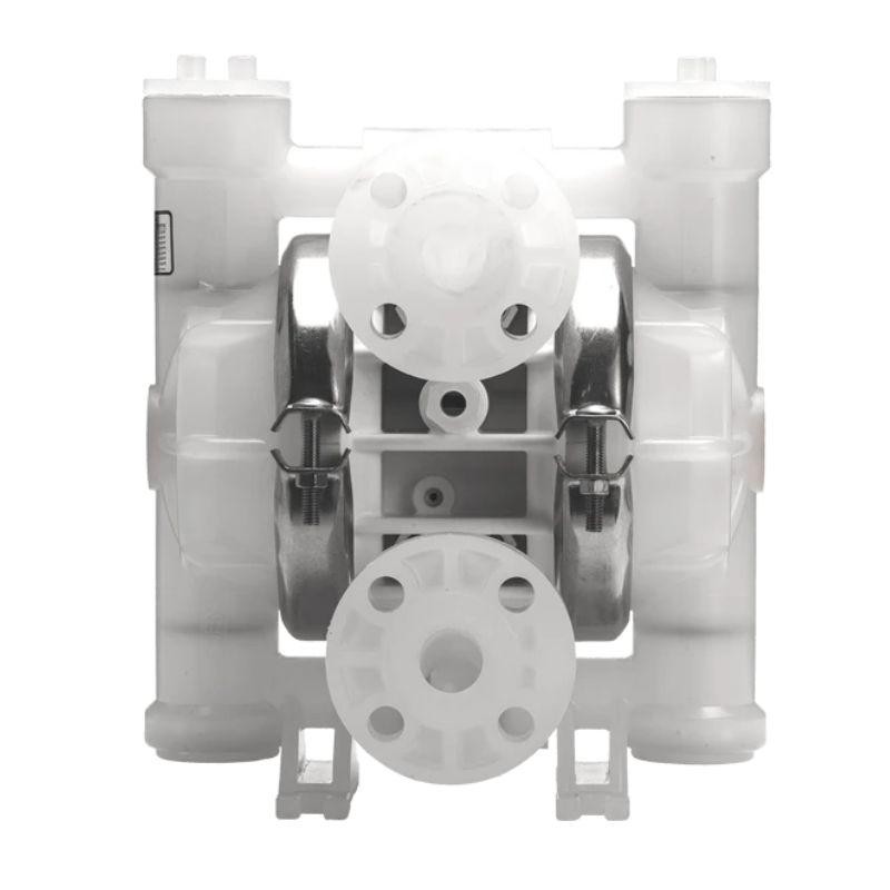 The Wilden 02-6246 P2/KKPPP/TNU/TF/KTV/0400 series of pneumatic diaphragm pumps, made of corrosion-resistant plastics, are suitable for a wide range of applications. The fluid-contacting parts are primarily made of polypropylene (PP) and polyvinylidene fluoride (PVDF). Due to their corrosion resistance and ability to handle solid particles, these pumps are widely used in the chemical, food, environmental, oil, and mining industries, and can be used to transport various media including solvents